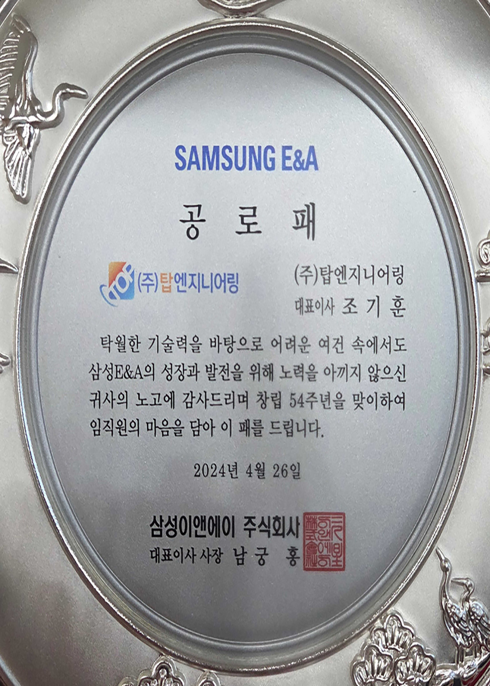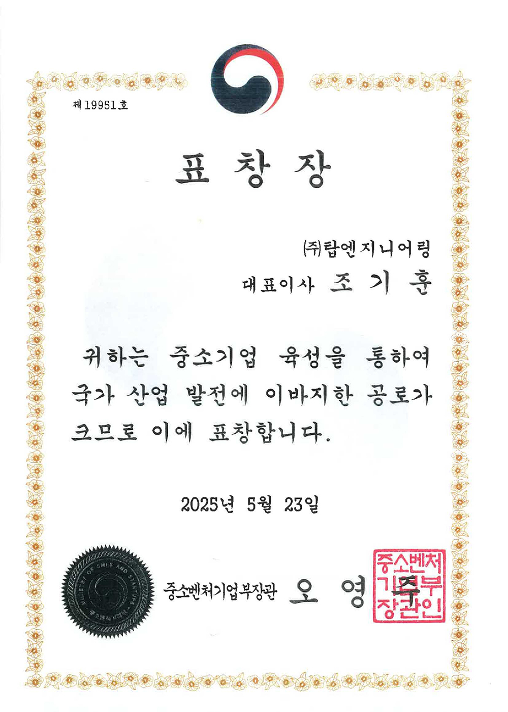 회사명 (주)탑엔지니어링 대표자명 조기훈 본사 충남 천안시 서북구 불당25로 226, 6층 625호 (골든스퀘어2) 공장 충남 아산시 음봉면 월산로 214-3 사업자 등록번호 312-86-65458